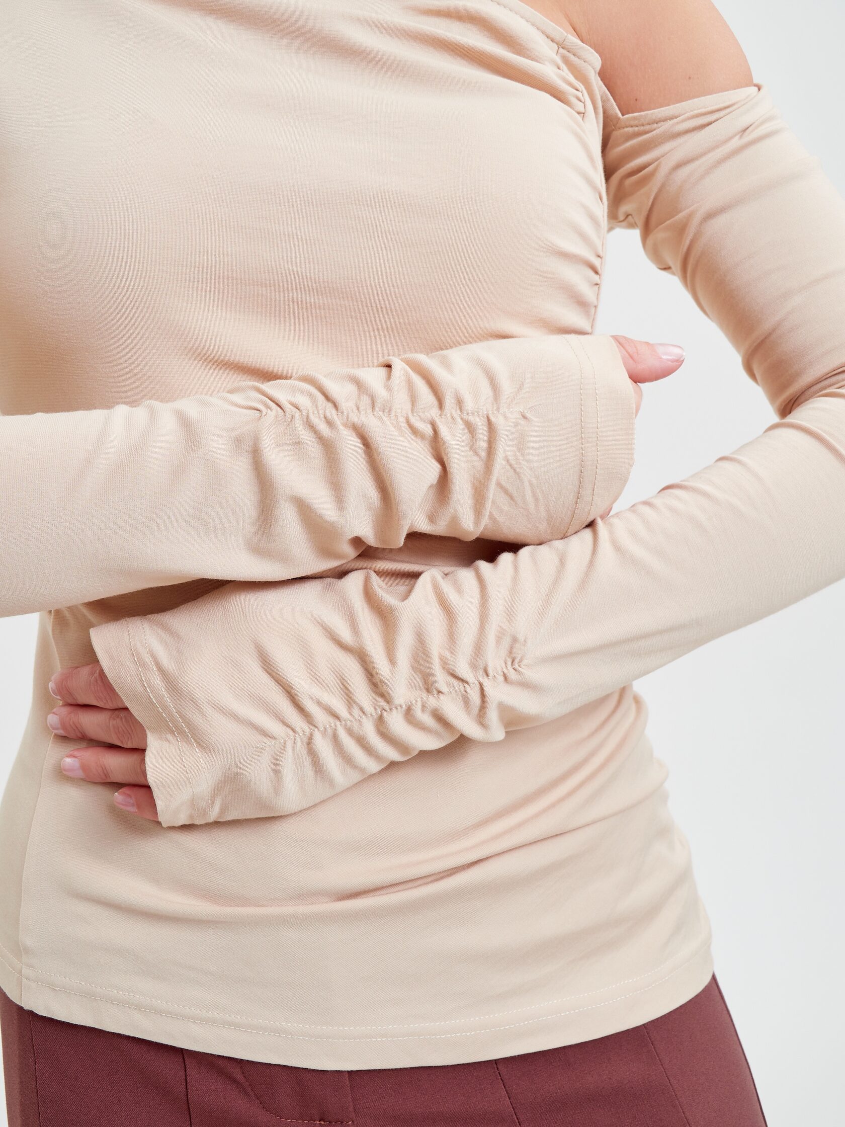Этот лонгслив создан для женщины, которая не стоит на месте — она пробует, наблюдает, открывает, меняется и совершенствуется каждый день. Она не ищет простых ответов, она идет своим путем, слушает интуицию и находит вдохновение в деталях.